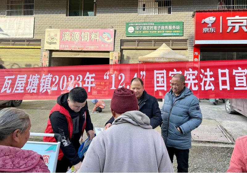 为深入学习宣传贯彻习近平法治思想,弘扬宪法精神,扎实推进“法治瓦屋”建设,12月6日上午,瓦屋塘镇人大利用赶集日,联合镇司法所、综治中心、派出所、妇联等部门开展国家宪法日法治宣传活动。