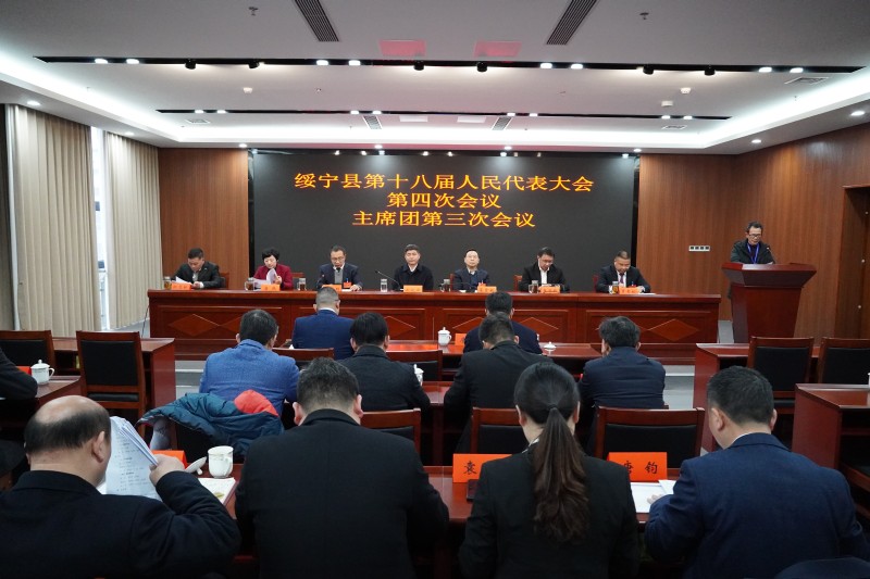 2月19日下午,绥宁县第十八届人民代表大会第四次会议主席团举行第三次会议。佘芝云、夏贤钦、石亮明、袁子玖、唐艳、罗青松、卿笃林在主席台就座。