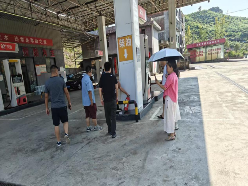 (寨市乡人大代表们在加油站检查消防设施、油品储存等安全管理制度落实情况) 7月7日,寨市乡人大主席团联合乡应急办、执法大队到加油站、河流、池塘等重点区域开展“法治护安人大行”执法检查,守护乡村安全。