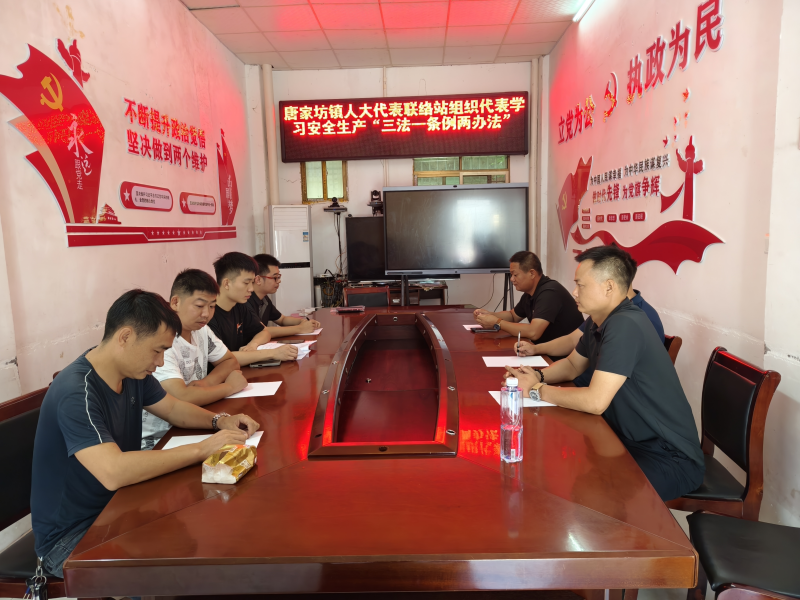 (唐家坊镇人大代表联络站组织学习安全生产“三法一条例两办法”) 6月26日唐家坊镇人大代表联络站组织学习安全生产“三法一条例两办法”文件精神。7月7日唐家坊镇人大主席团组织人大代表们先后来到唐家坊镇金马超市、金岭加油站等单位开展执法检查。