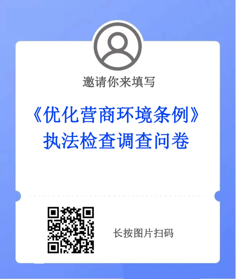 为全面了解绥宁县营商环境现状,及时发现处理企业、群众办事中遇到的痛点、堵点问题,推动企业群众办事全流程标准化,营造市场化、法治化、国际化营商环境,绥宁县人大常委会《优化营商环境条例》执法检查领导小组办公室特邀请您开展调查问卷活动。请您抽出宝贵时间,根据自己所了解的真实情况,客观公正地填写调查问卷。 您需扫描或长按上图二维码进行填写,欢迎广大群众和社会各界人士踊跃参与,感谢您对绥宁县优化提升营商坏境工作的支持与配合! |