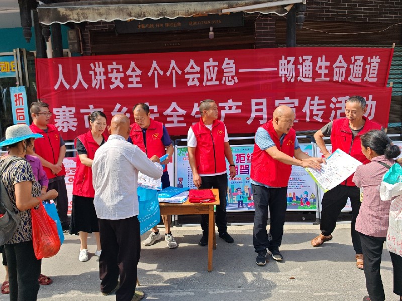 6月21日,寨市乡人大主席团组织县乡人大代表协同乡应急办在辖区内开展“人人讲安全,个个会应急——畅通生命通道”的安全生产月宣传活动。
