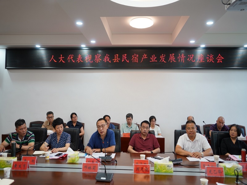7月17日,部分住绥省、市和县人大代表视察我县民宿产业发展工作并召开座谈会。县人大常委会党组书记、主任石亮明,党组副书记、副主任袁子玖,副主任唐艳、罗青松、卿笃林、莫丛英和副县长周元彪参加视察活动。